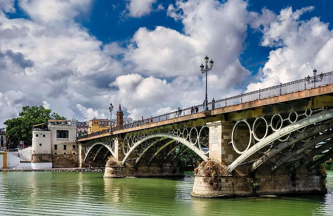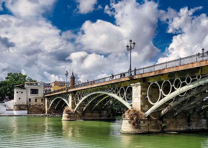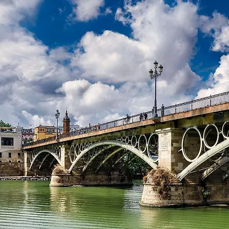 Located around a 5-minute walk from Plaza de Cuba underground station, the 70 m² El Cielo De Triana Apartment Seville also boasts proximity to the salmon - orange Santa Ana Church.